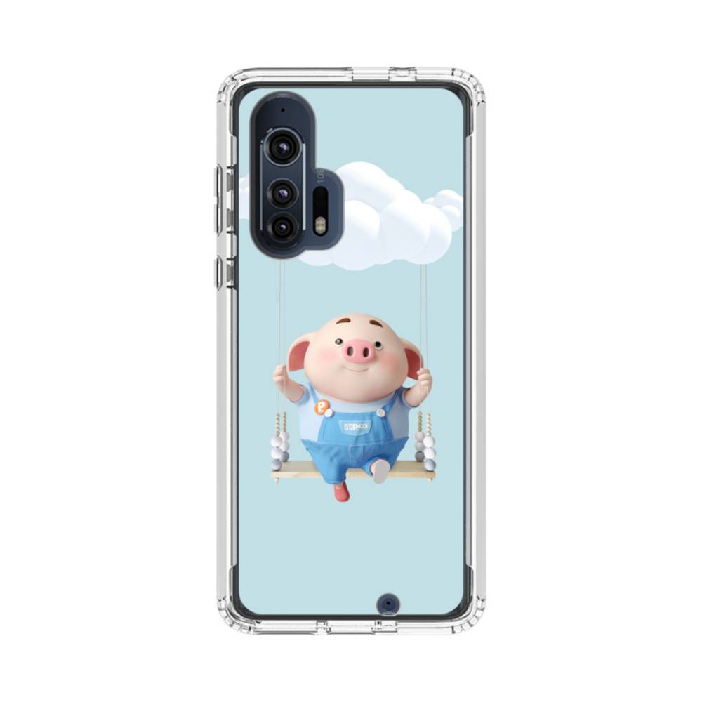 雲の下でブランコに乗ったコブタ Motorola Edge Plus クリアケース