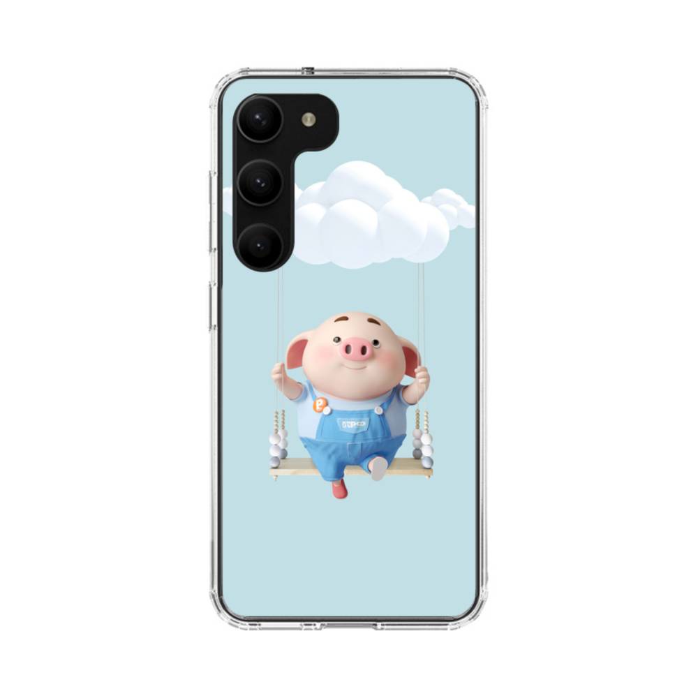 雲の下でブランコに乗ったコブタ Samsung Galaxy S23 Plus クリアケース