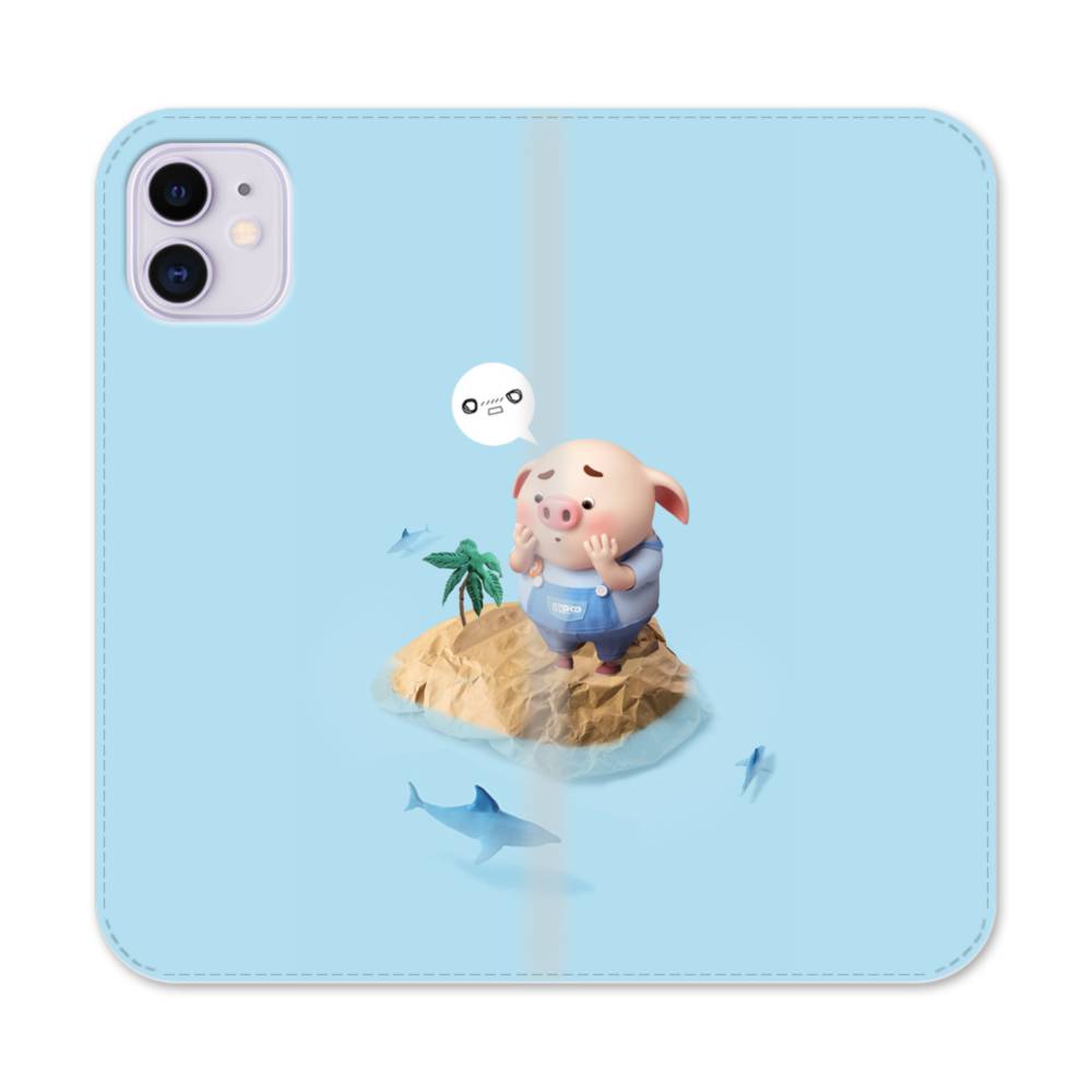 小島に孤立したコブタ iPhone 11 手帳型ケース