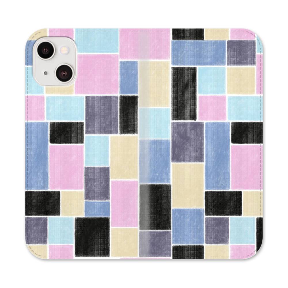 パステルカラー・格子 iPhone 13 手帳型ケース