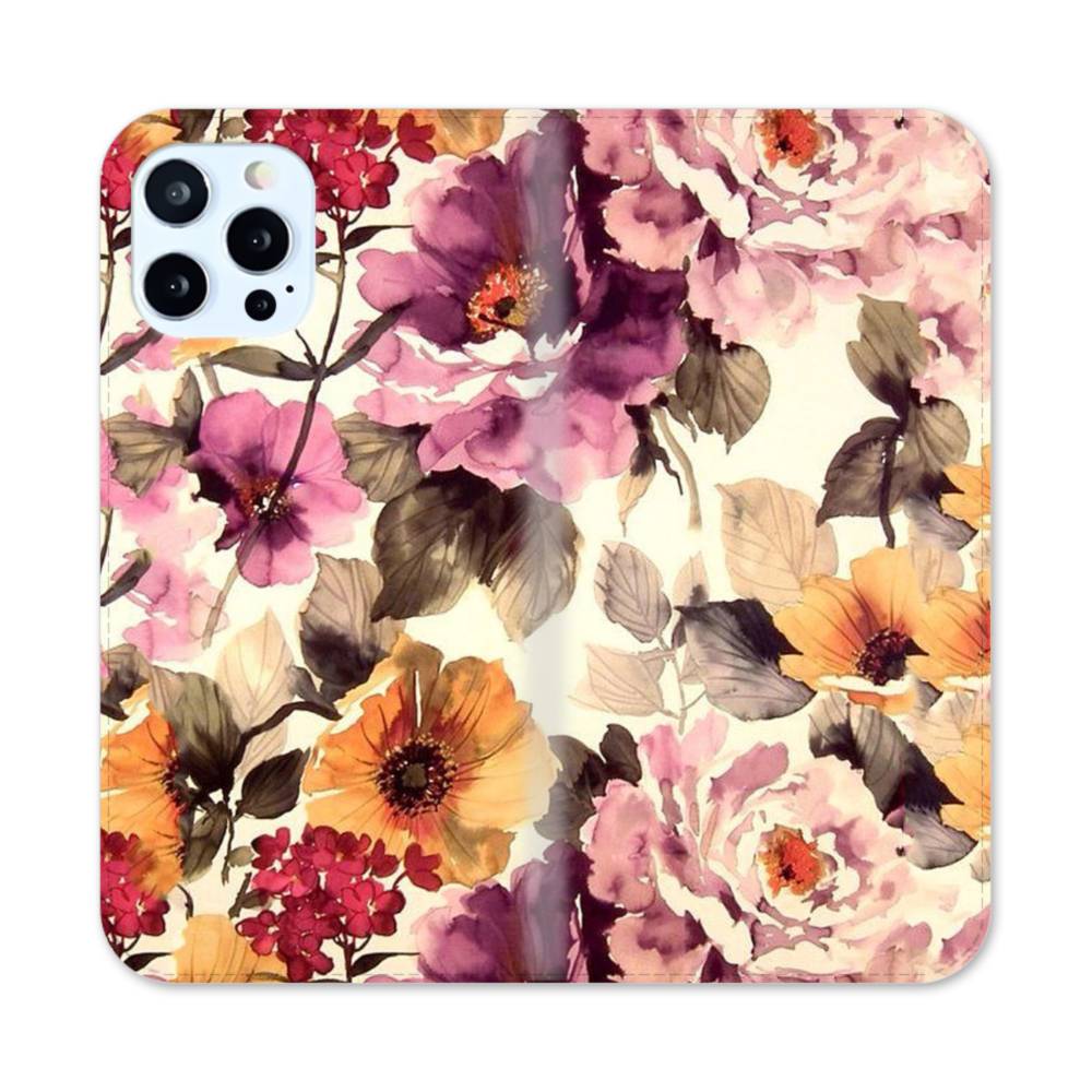 墨絵のようなアート・花 iPhone 12 Pro 手帳型ケース