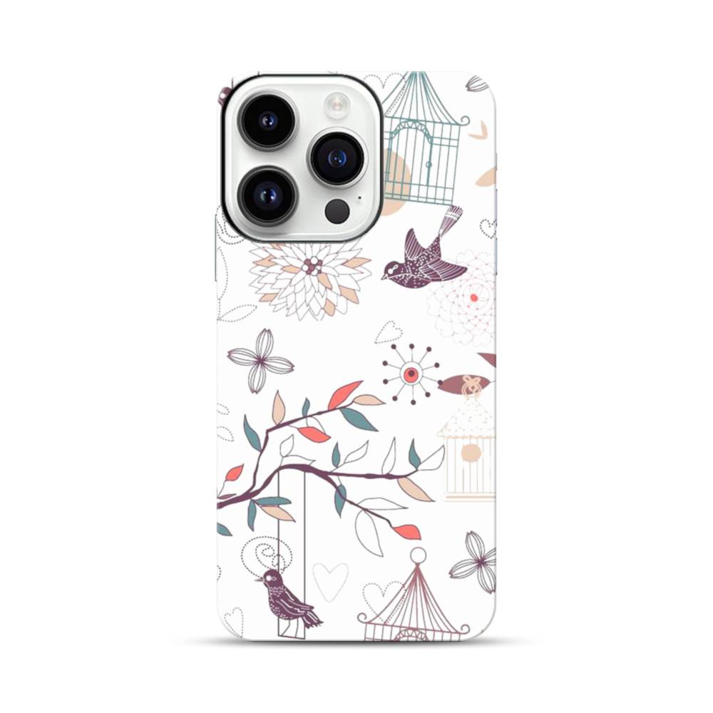 ハニー・ロマンチックなイメージ:鳥&花柄 iPhone 14 Pro タフケース
