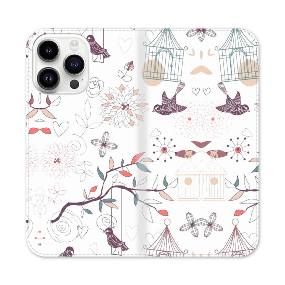 ハニー・ロマンチックなイメージ:鳥&花柄 iPhone 14 Pro Max 手帳型ケース