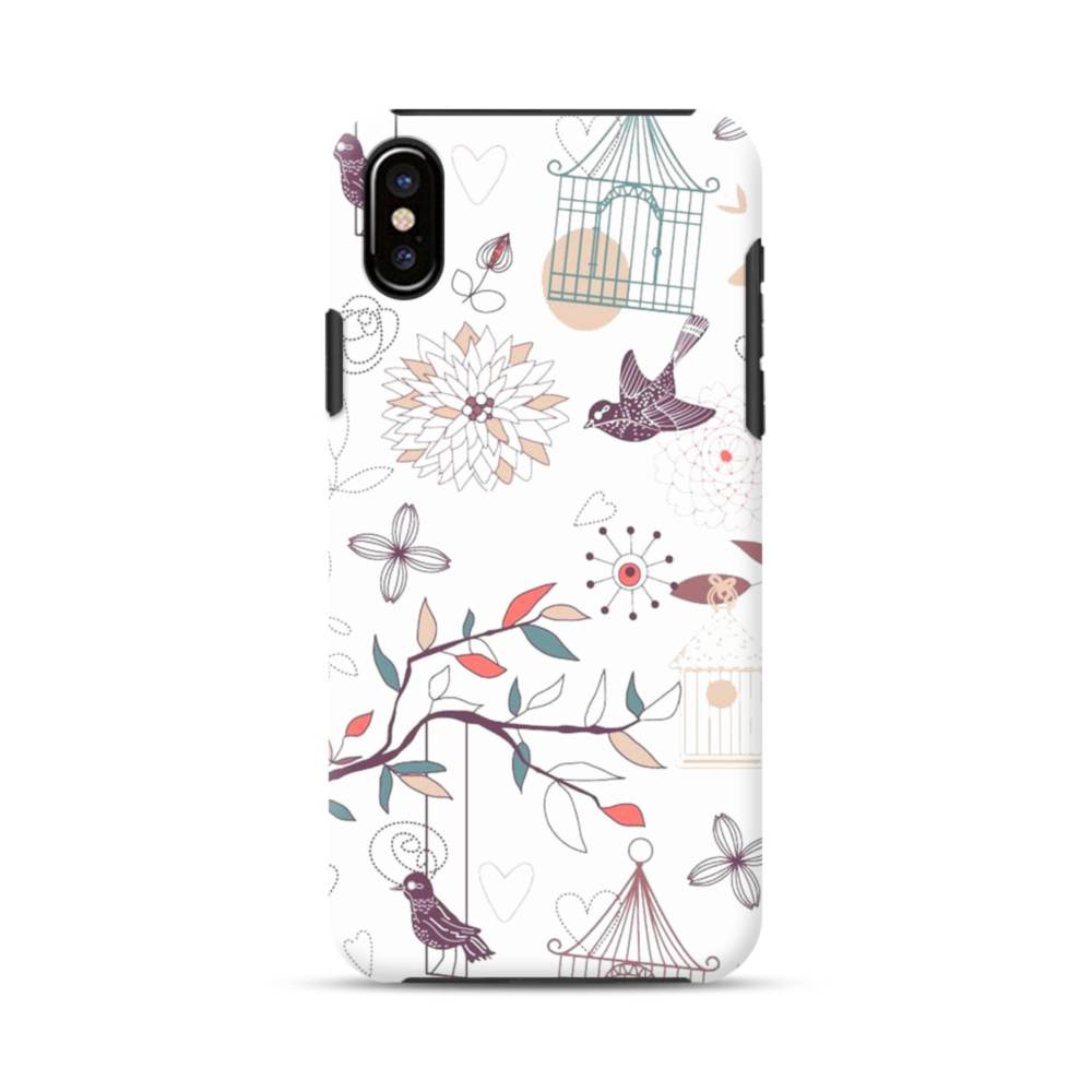 ハニー・ロマンチックなイメージ:鳥&花柄 iPhone XS タフケース
