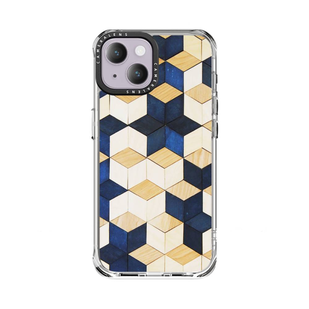 タイル模様・白&紺 iPhone 14 Plus クリアケース