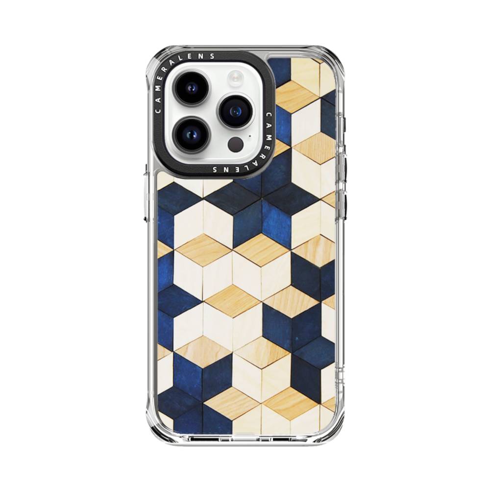 タイル模様・白&紺 iPhone 14 Pro クリアケース