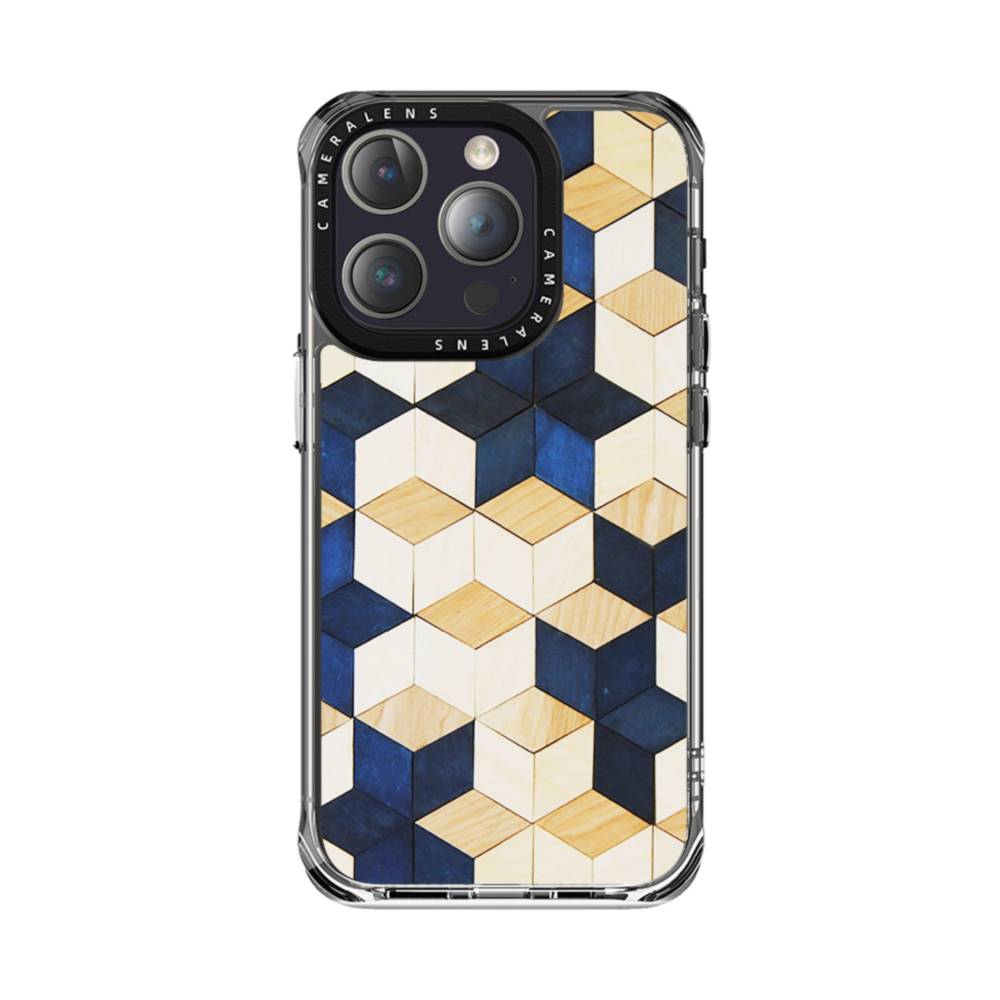 タイル模様・白&紺 iPhone 14 Pro Max クリアケース