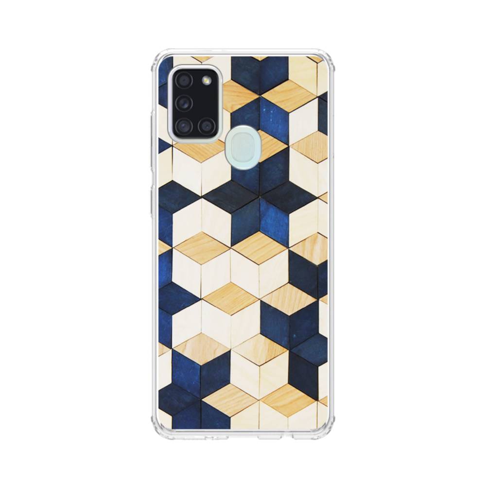 タイル模様・白&紺 Samsung Galaxy A21s クリアケース