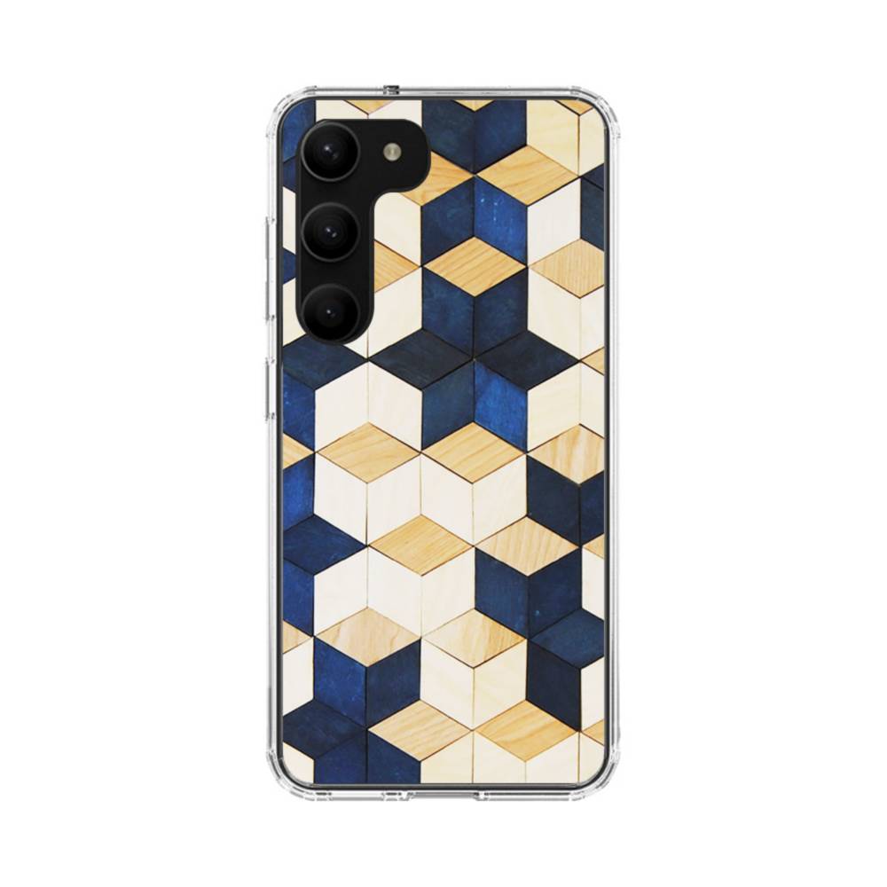 タイル模様・白&紺 Samsung Galaxy S23 クリアケース