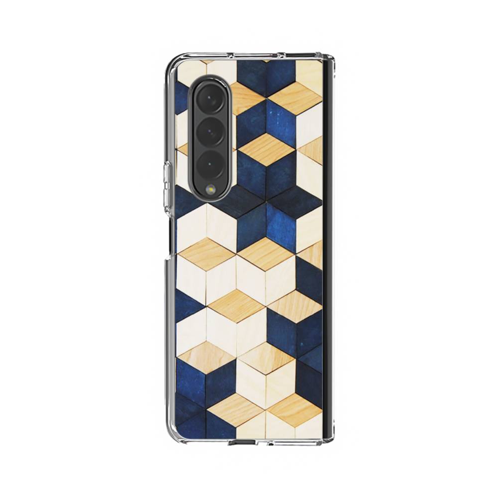 タイル模様・白&紺 Samsung Galaxy Z Fold 4 クリアケース