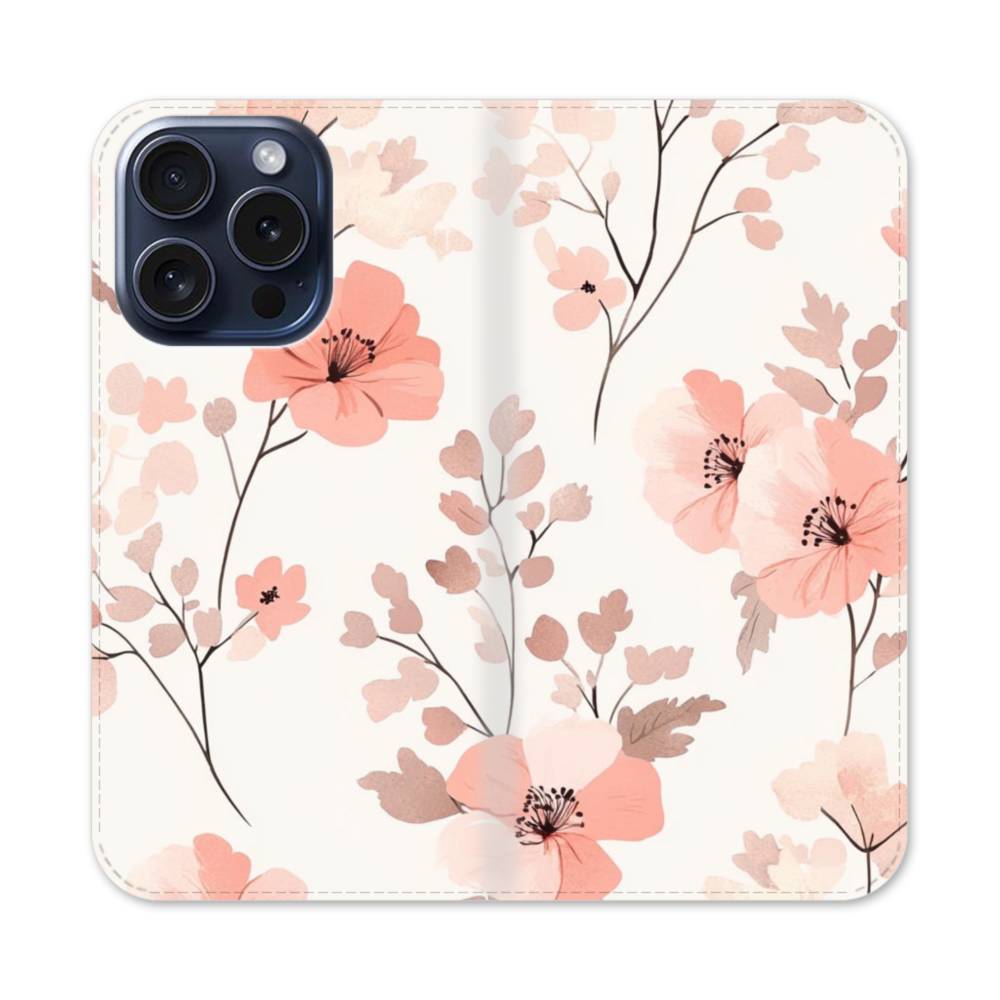 花柄・赤 iPhone 15 Pro 手帳型ケース