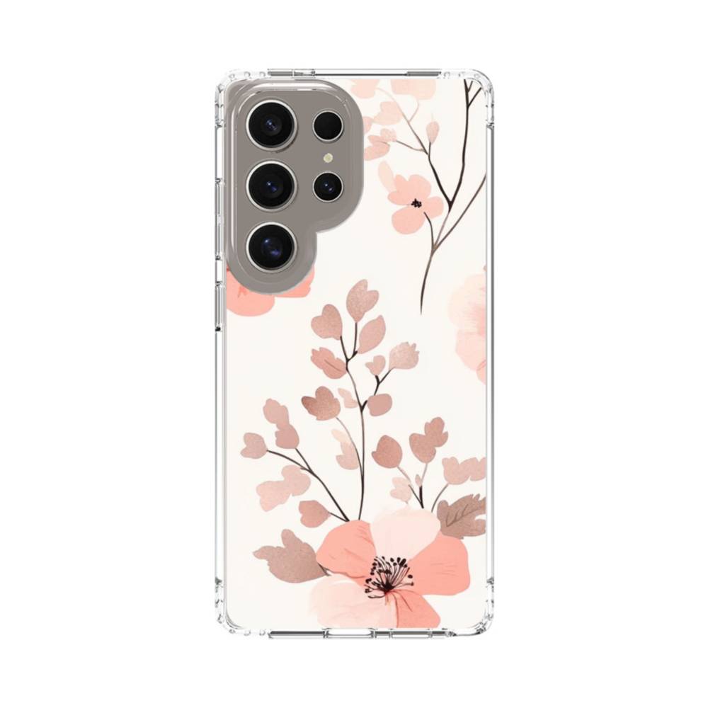 花柄・赤 Samsung Galaxy S25 Ultra クリアケース