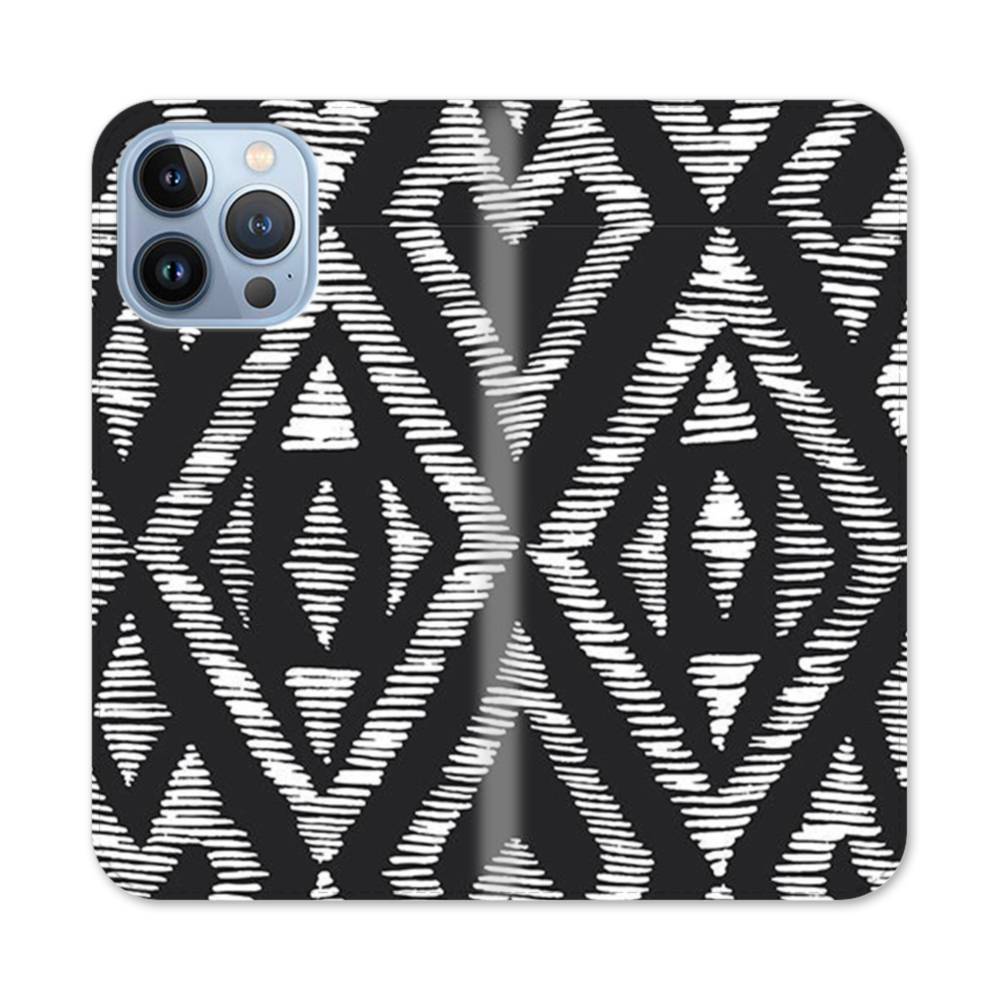 織物のような幾何模様 iPhone 13 Pro 手帳型ケース