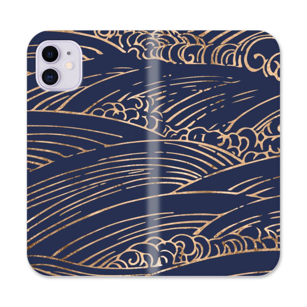 伝統の紋・浪紋・インディゴブルー iPhone 11 手帳型ケース