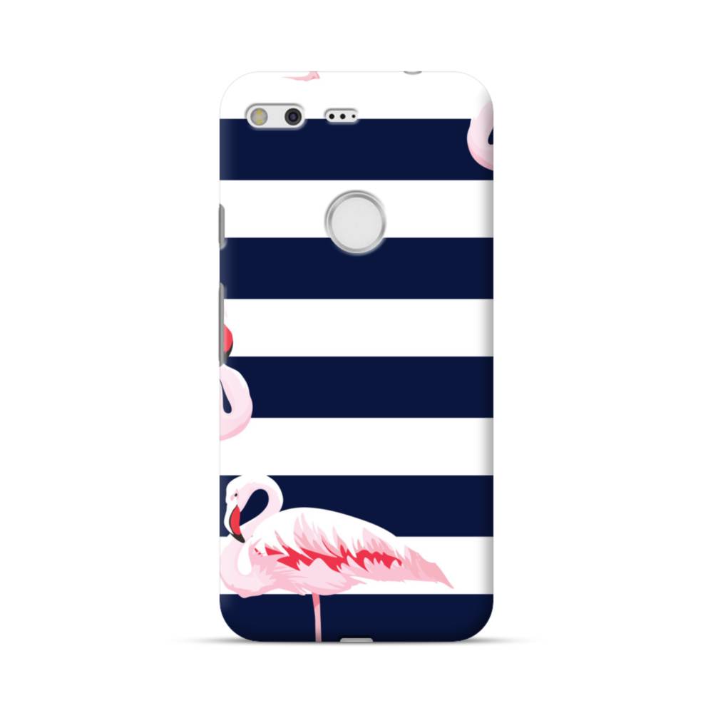 ストライプ背景にフラミンゴ Google Pixel ハードケース