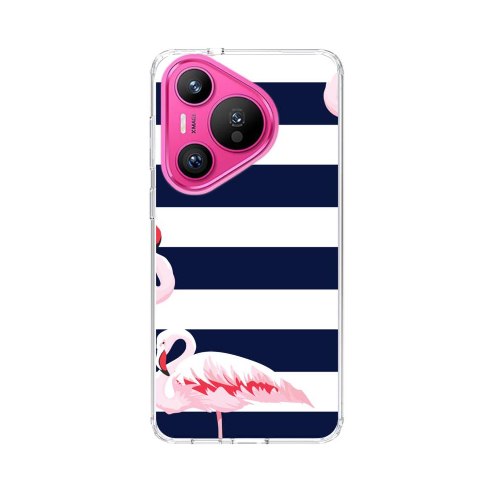 ストライプ背景にフラミンゴ Huawei Pura 70 クリアケース
