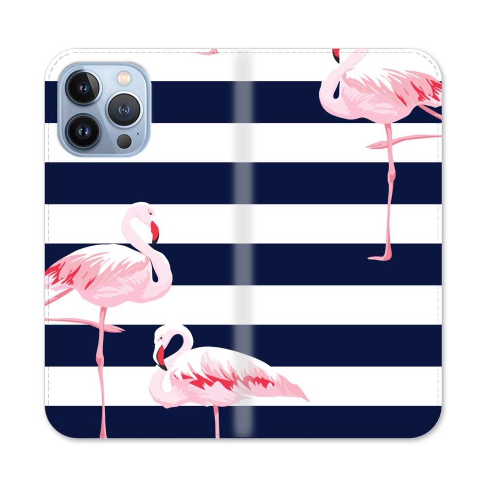 ストライプ背景にフラミンゴ iPhone 13 Pro Max 手帳型ケース