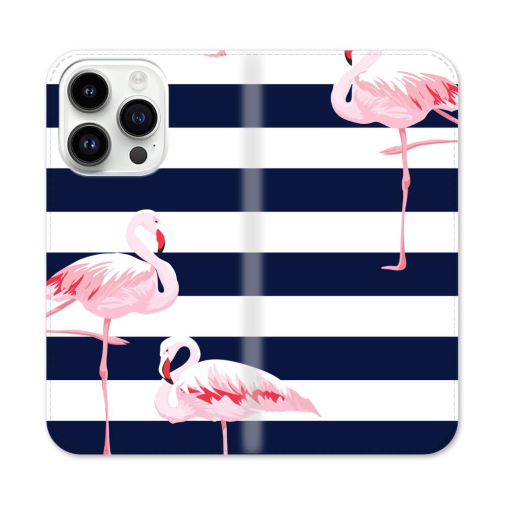 ストライプ背景にフラミンゴ iPhone 14 Pro 手帳型ケース