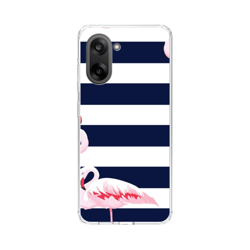 ストライプ背景にフラミンゴ OnePlus Nord CE 5 クリアケース