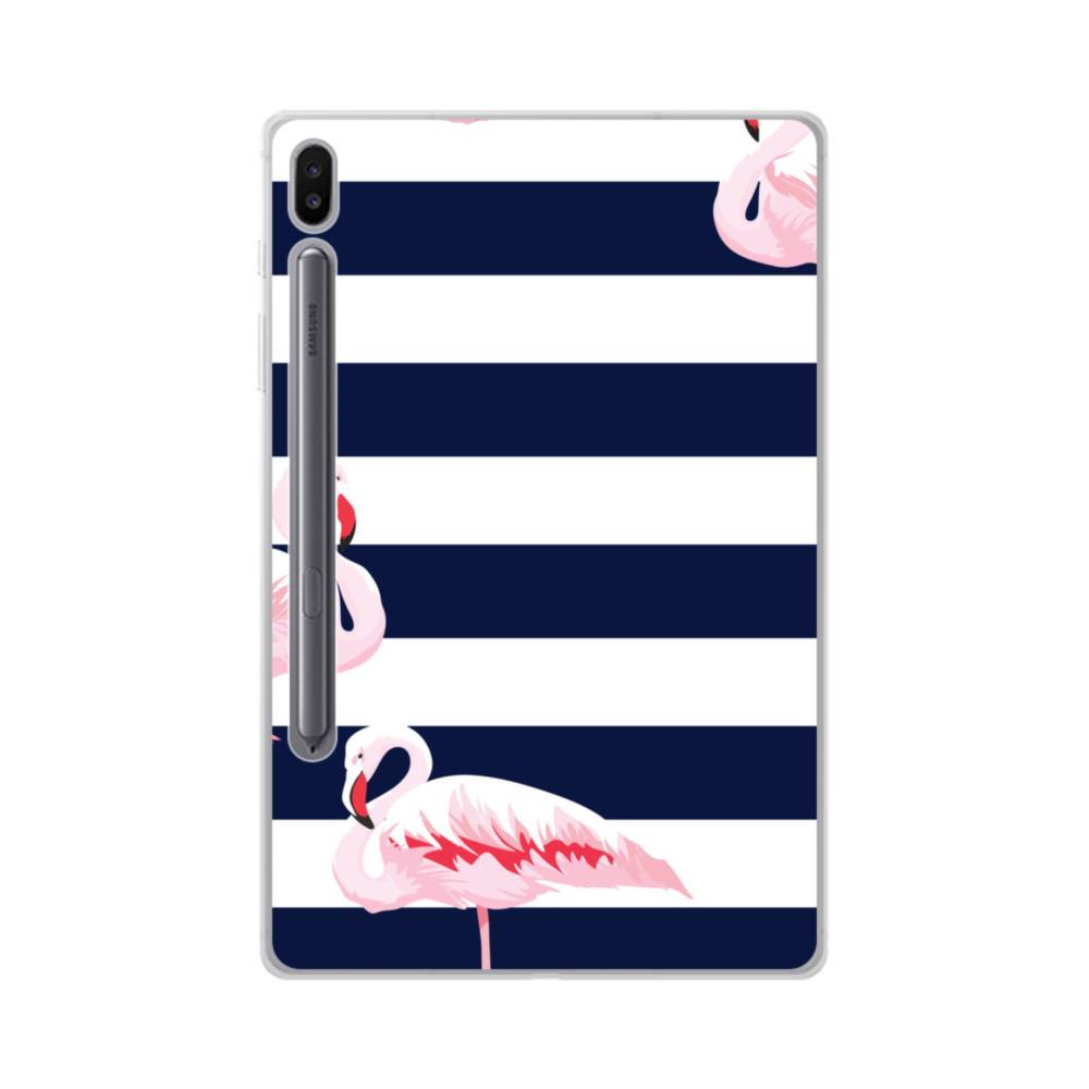 ストライプ背景にフラミンゴ Samsung Galaxy Tab S6 クリアケース