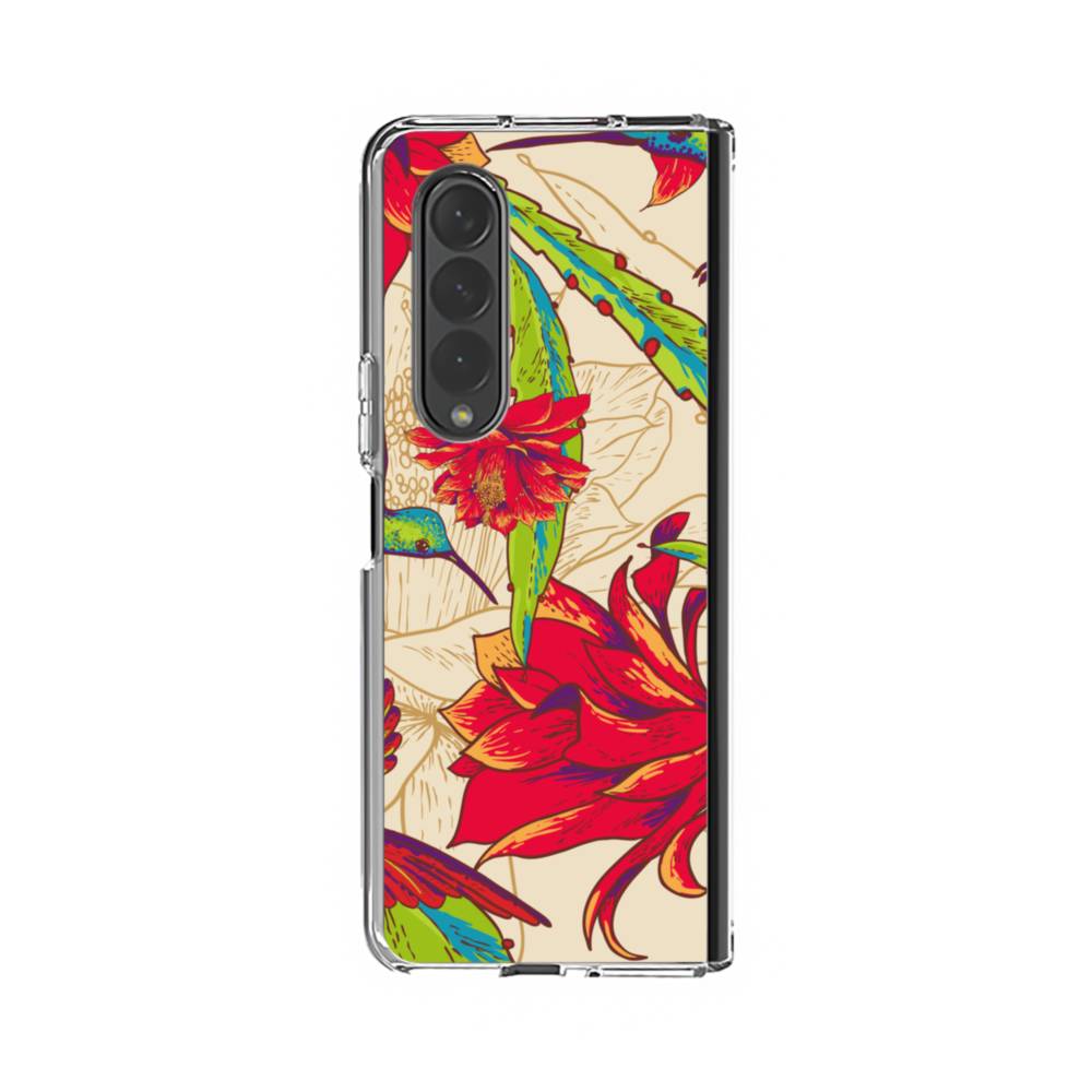 レッドフラワー&熱帯鳥 Samsung Galaxy Z Fold 4 クリアケース