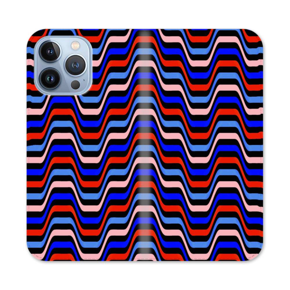 レッド&ブルーのウェーブ iPhone 13 Pro 手帳型ケース