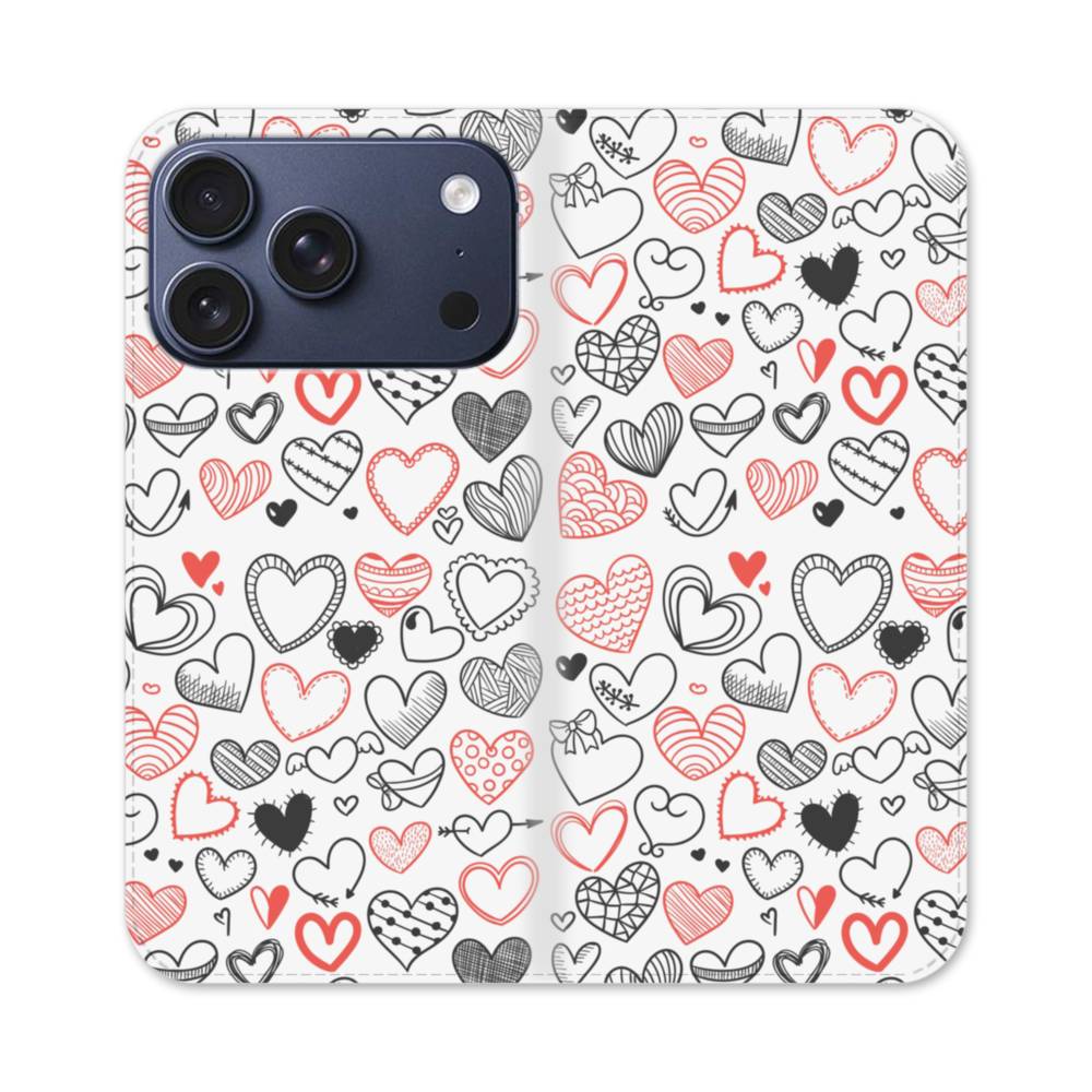 バレンタインデー・ハートのアート:ハニー・ハート柄 iPhone 17 Pro 手帳型ケース