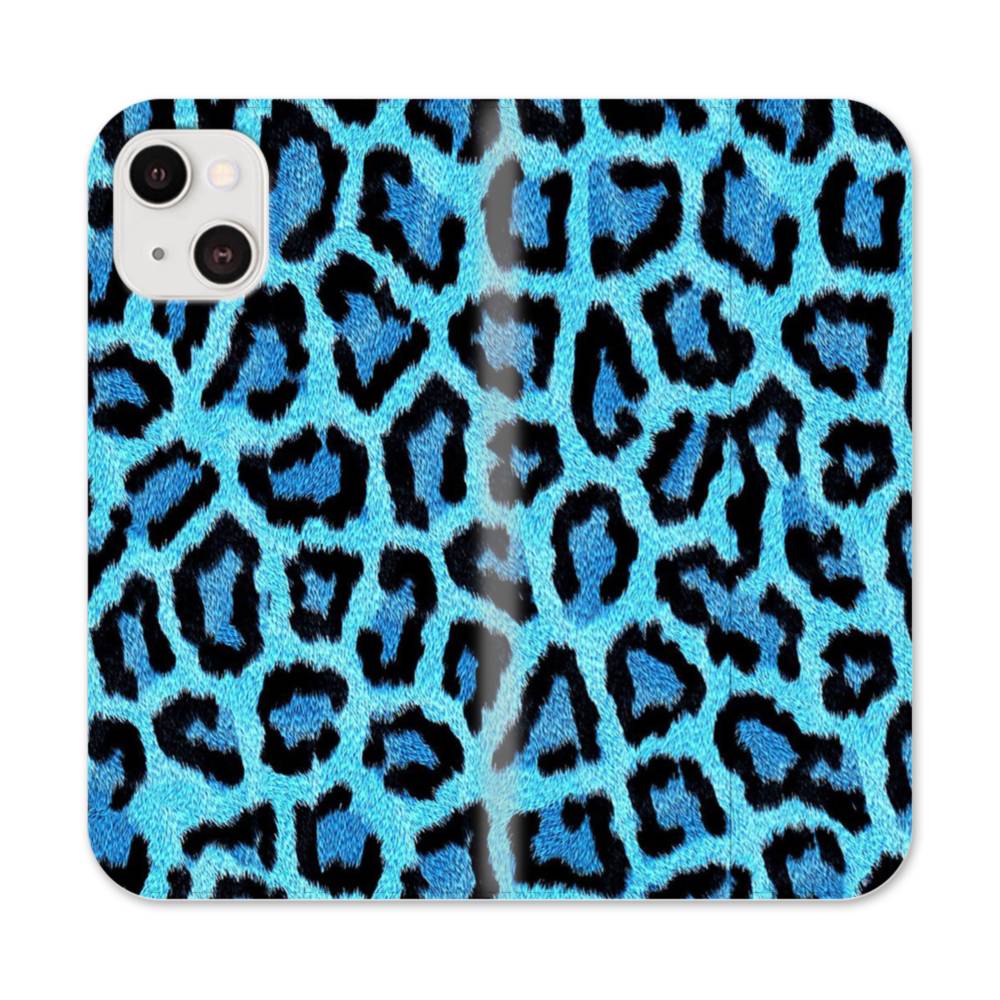 ブルーネオン・ヒョウ柄 iPhone 13 Mini 手帳型ケース