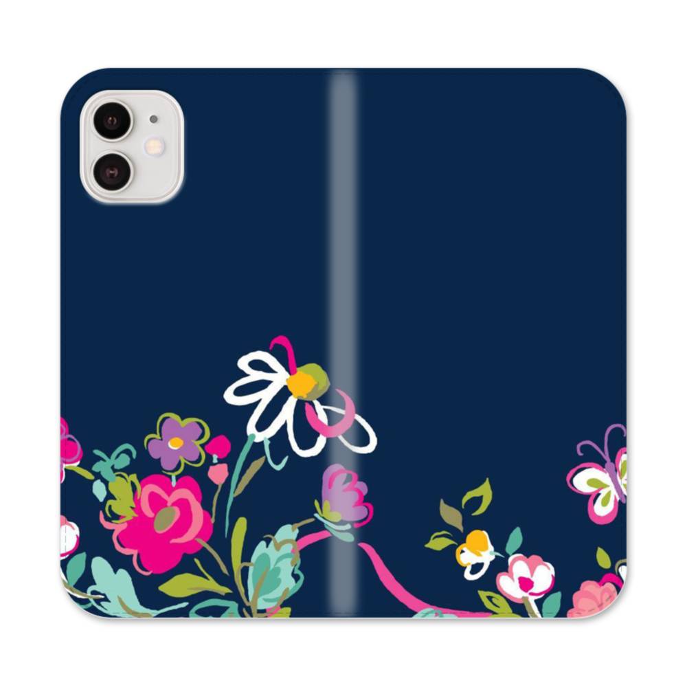 手書き風・水彩花柄 iPhone 12 手帳型ケース