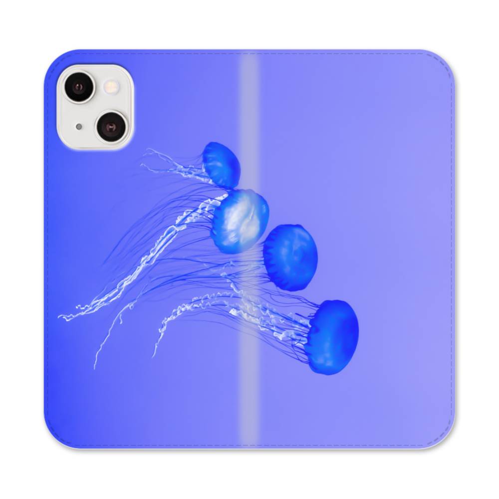 ブルー・海月 iPhone 13 Mini 手帳型ケース