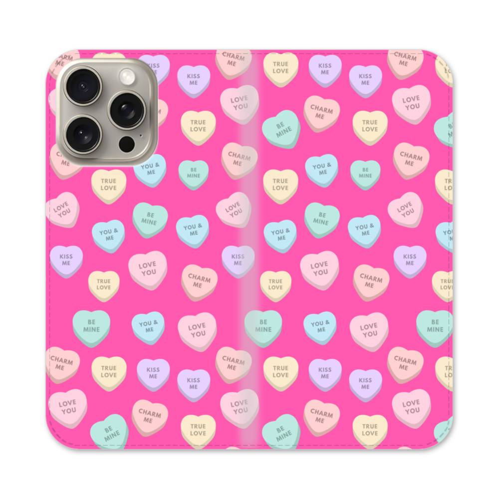 バレンタインデー・ハートのアート:アルファベット入りハート柄 iPhone 15 Pro Max 手帳型ケース