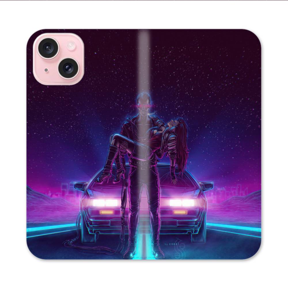 ネオン・ウェーブ・カップル iPhone 15 手帳型ケース