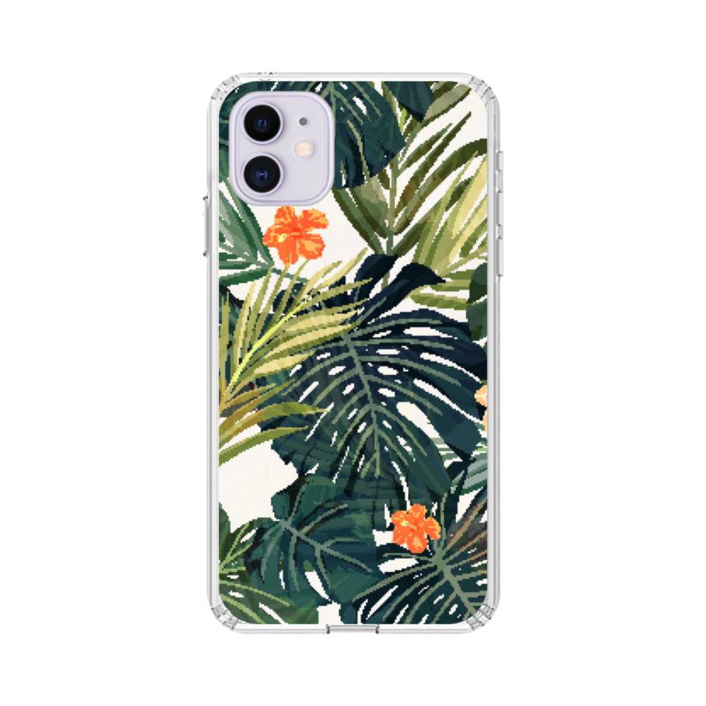 ハワイアン・熱帯植物リーフ&ハイビスカス iPhone 11 クリアケース