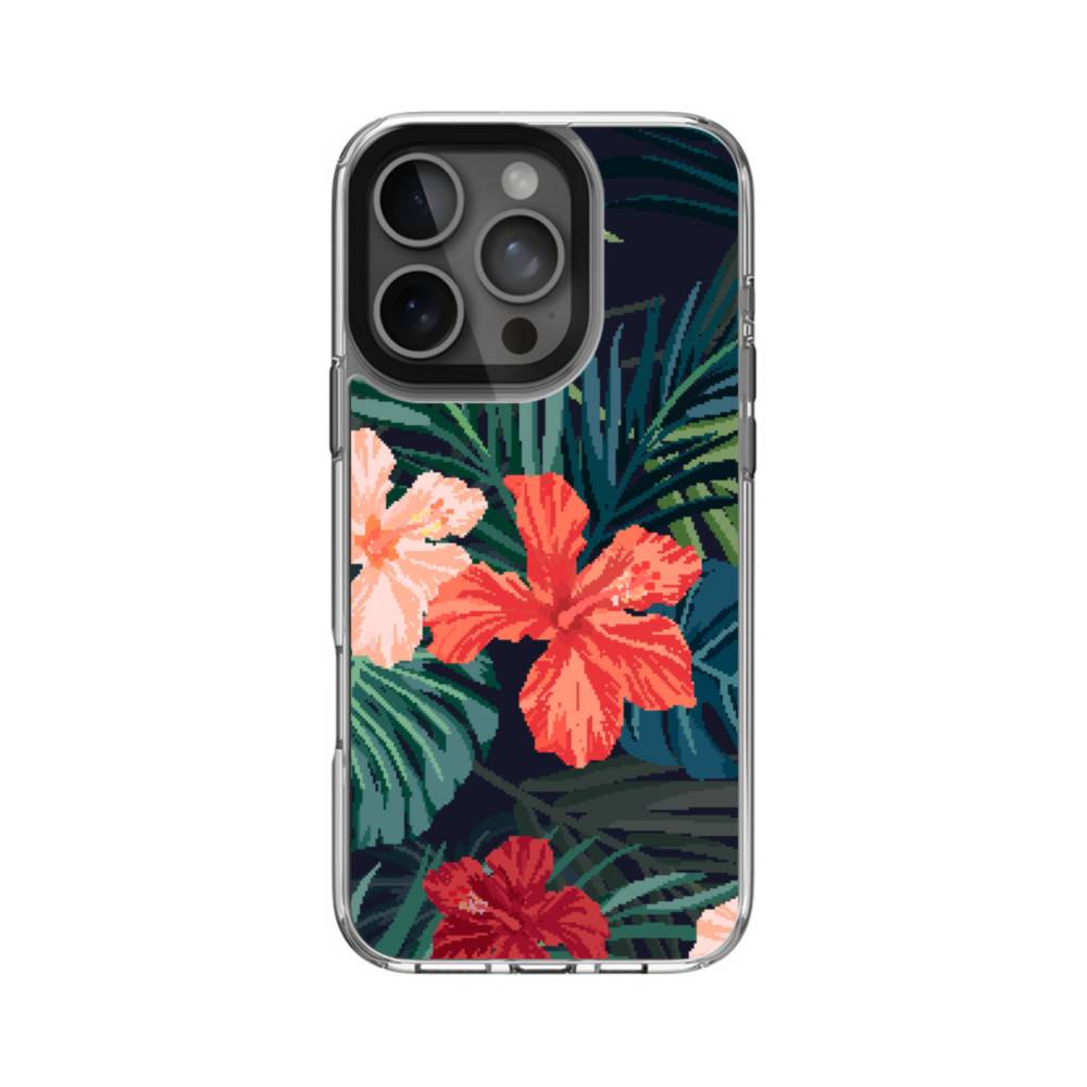南国イメージ・ハイビスカス&リーフ iPhone 16 Pro クリアケース