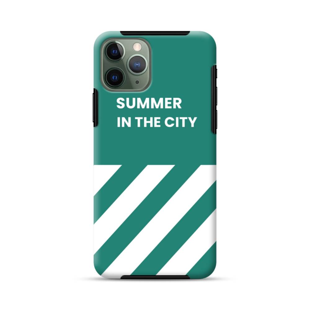 ミントグリーン&英文:Summer in the city iPhone 11 Pro タフケース