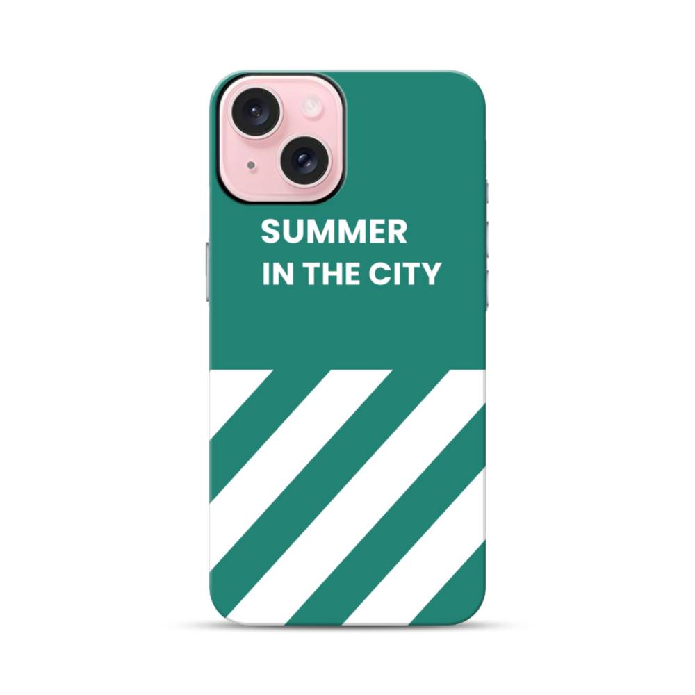 ミントグリーン&英文:Summer in the city iPhone 15 タフケース