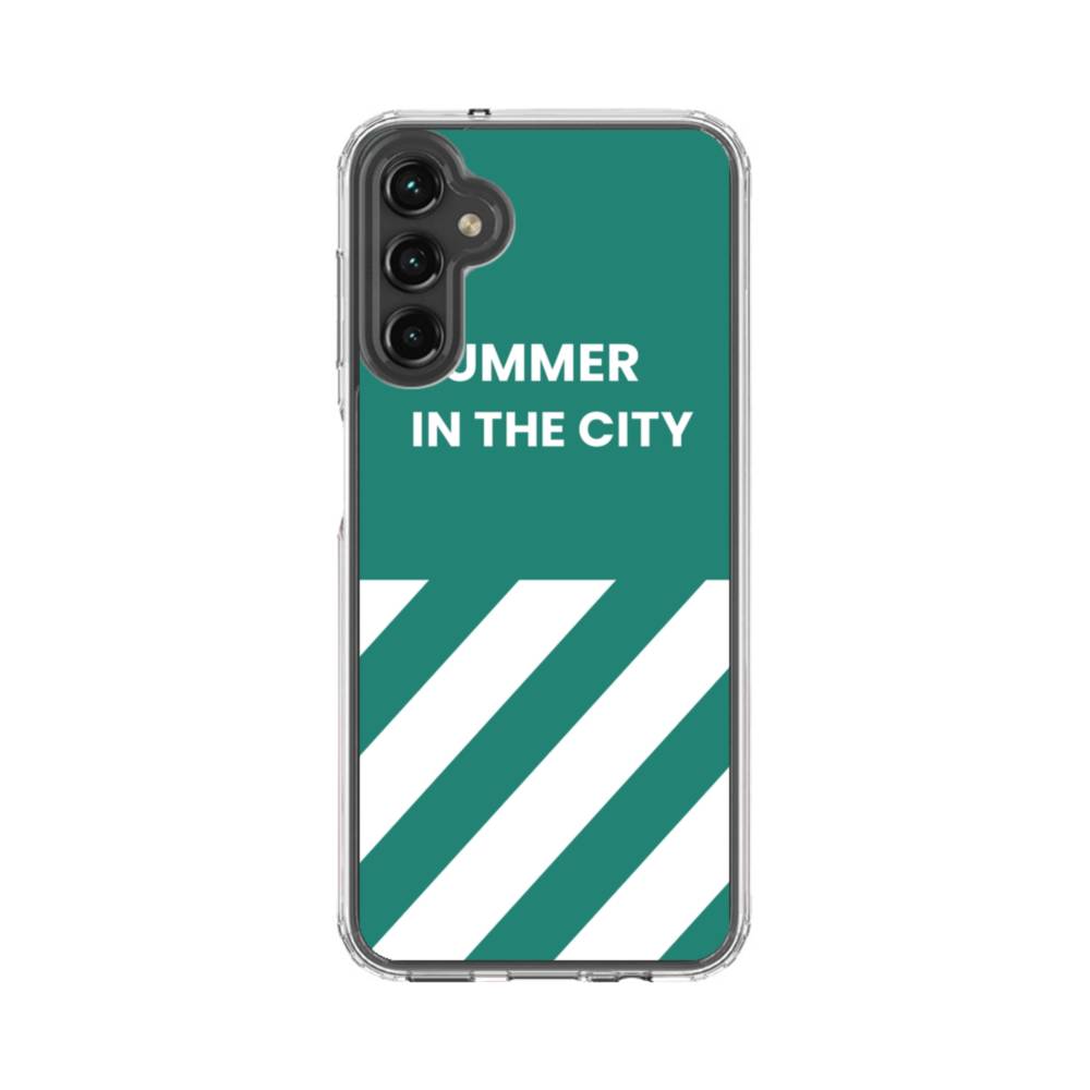 ミントグリーン&英文:Summer in the city Samsung Galaxy A14 (5G) クリアケース