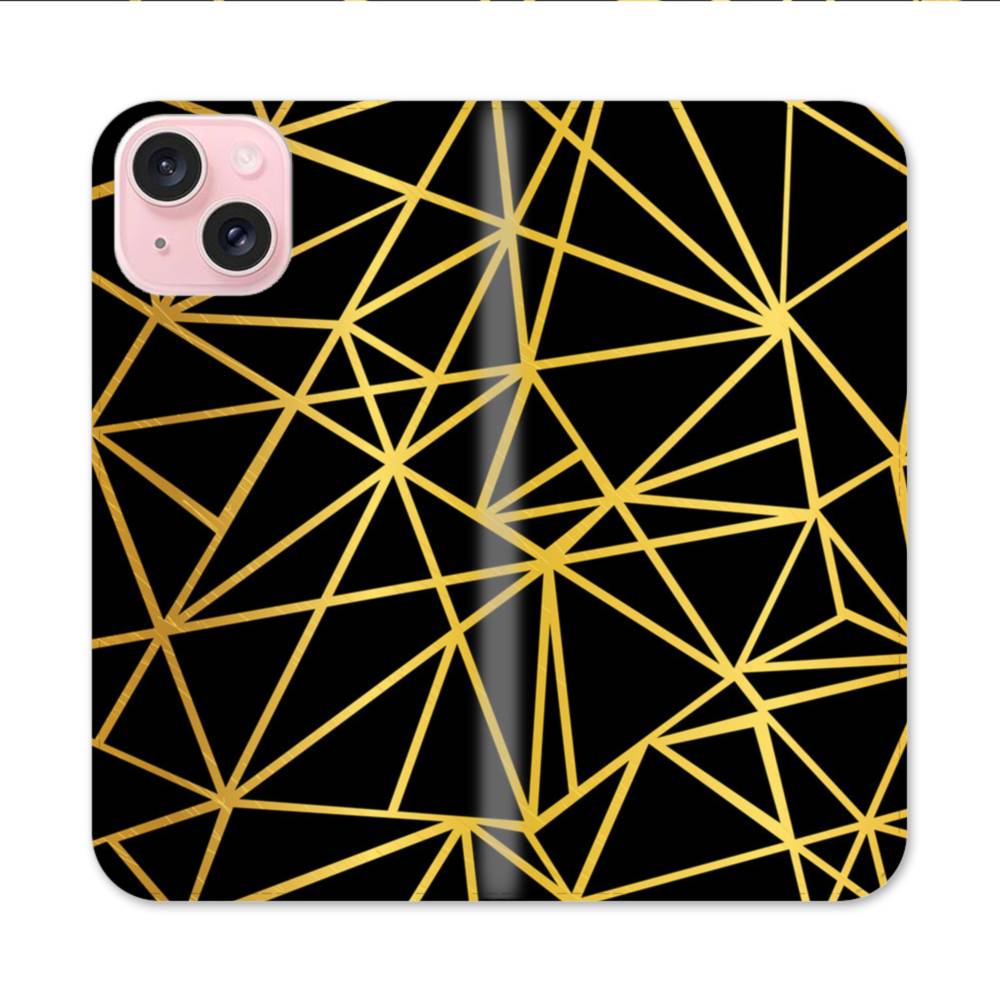 ゴールド・ラインとブラックの舞 iPhone 15 手帳型ケース