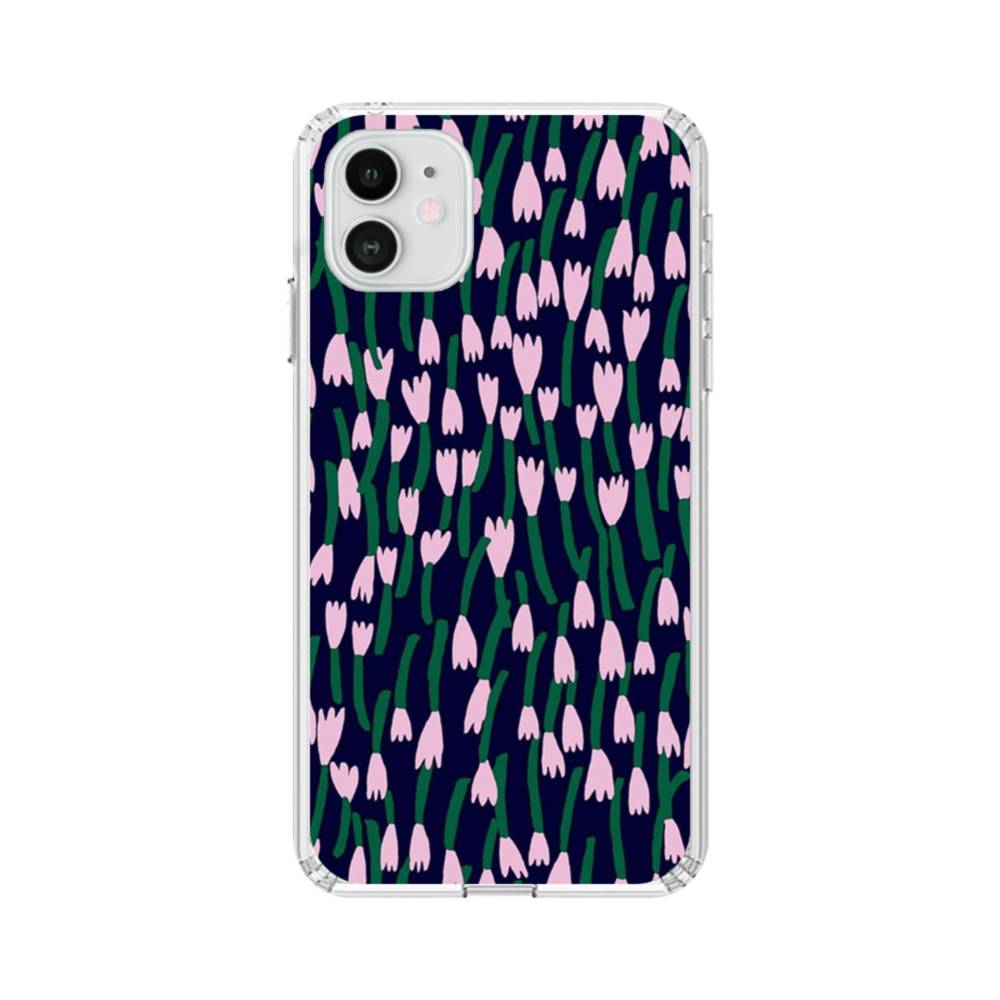 濃い緑&薄い紫・小花 iPhone 12 クリアケース