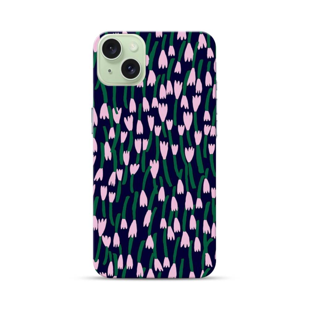 濃い緑&薄い紫・小花 iPhone 15 Plus ハードケース