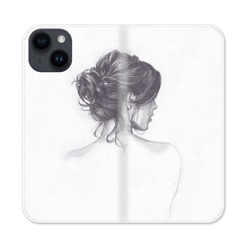 手描き風:女の後ろ姿 iPhone 14 手帳型ケース