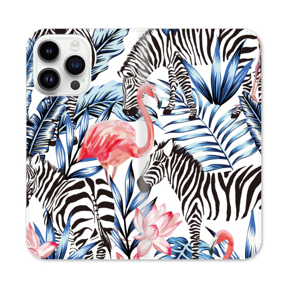 フラミンゴ・しまうま iPhone 14 Pro Max 手帳型ケース