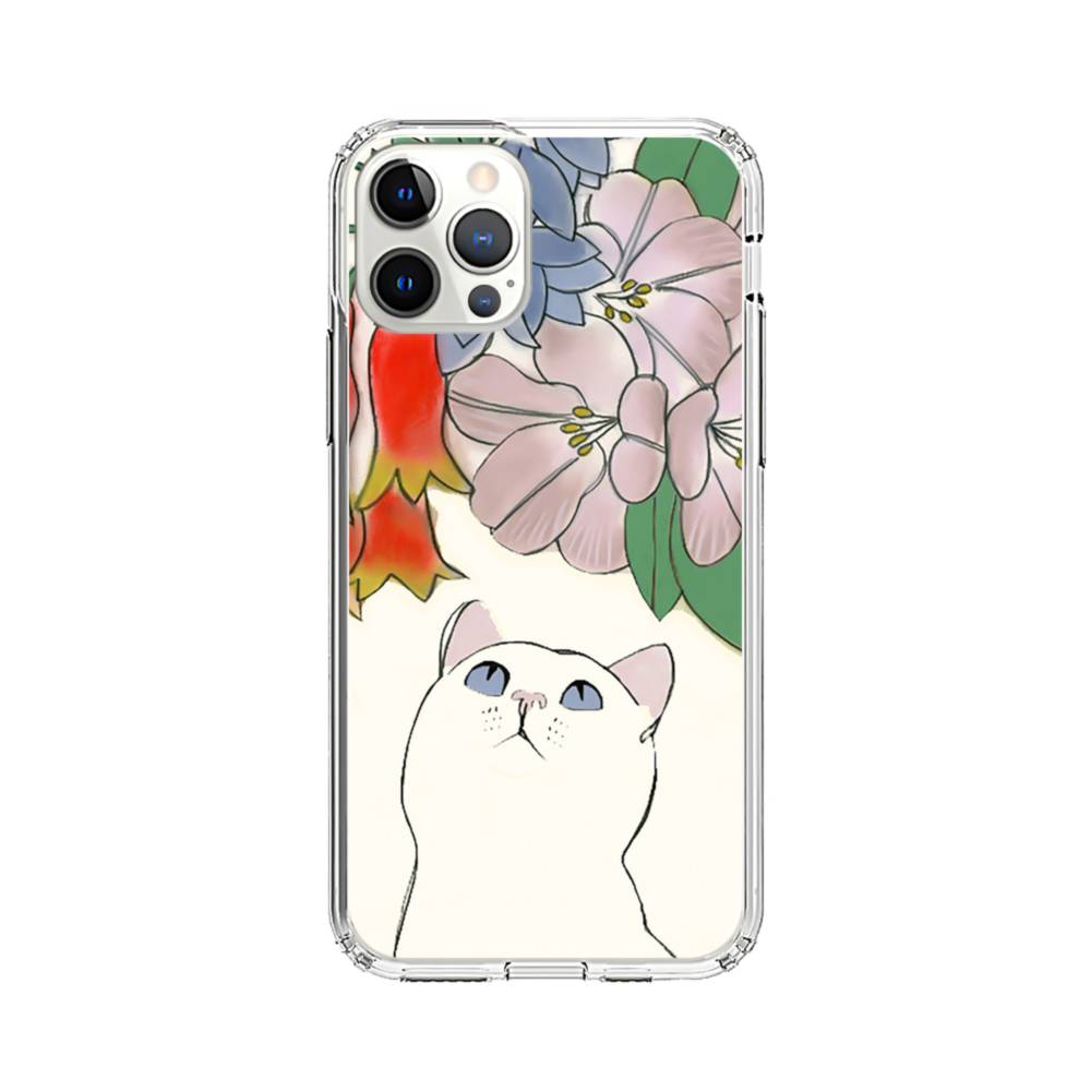 手書き風:猫&花 iPhone 12 Pro クリアケース