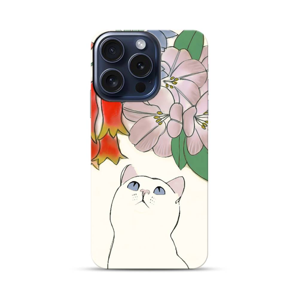 手書き風:猫&花 iPhone 15 Pro タフケース