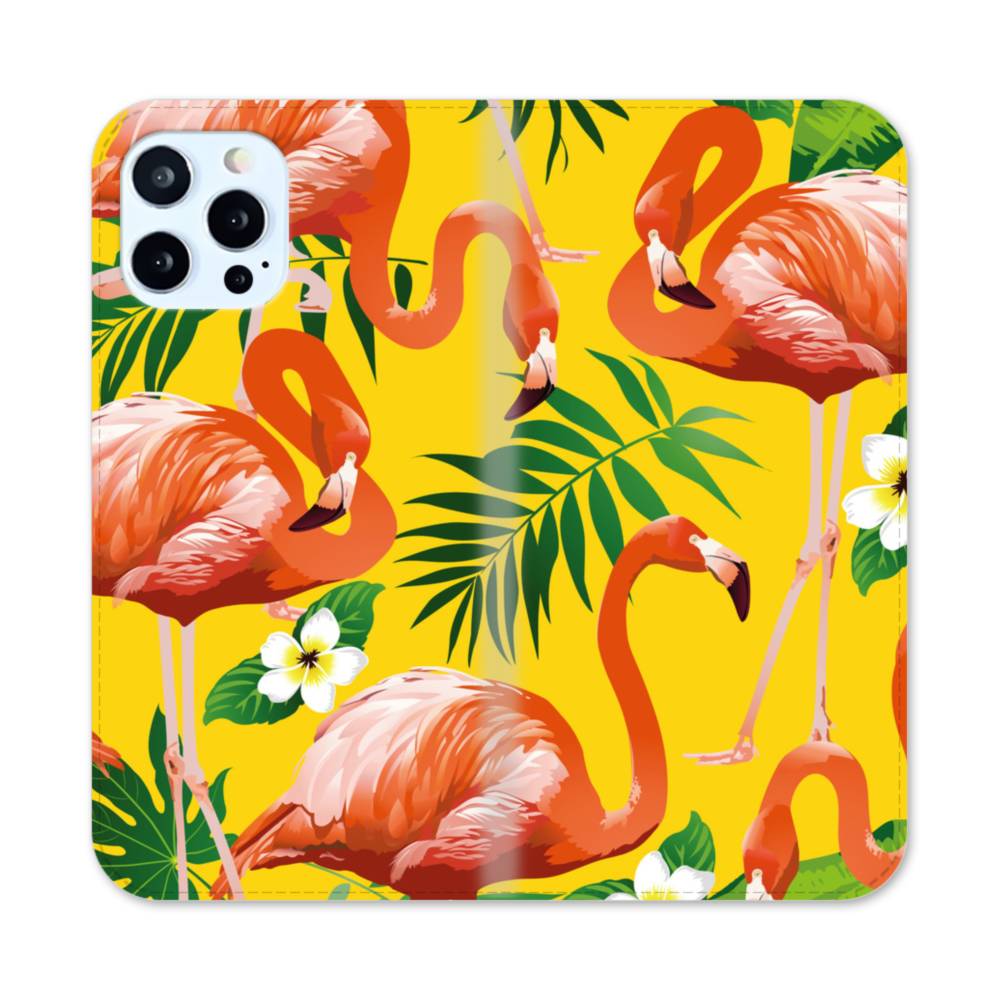 フラミンゴ・花・葉 iPhone 12 Pro 手帳型ケース