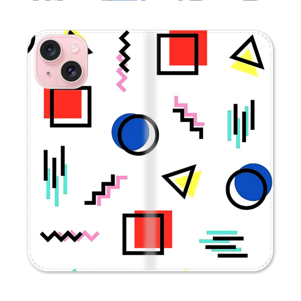 手書き風幾何図 iPhone 15 手帳型ケース