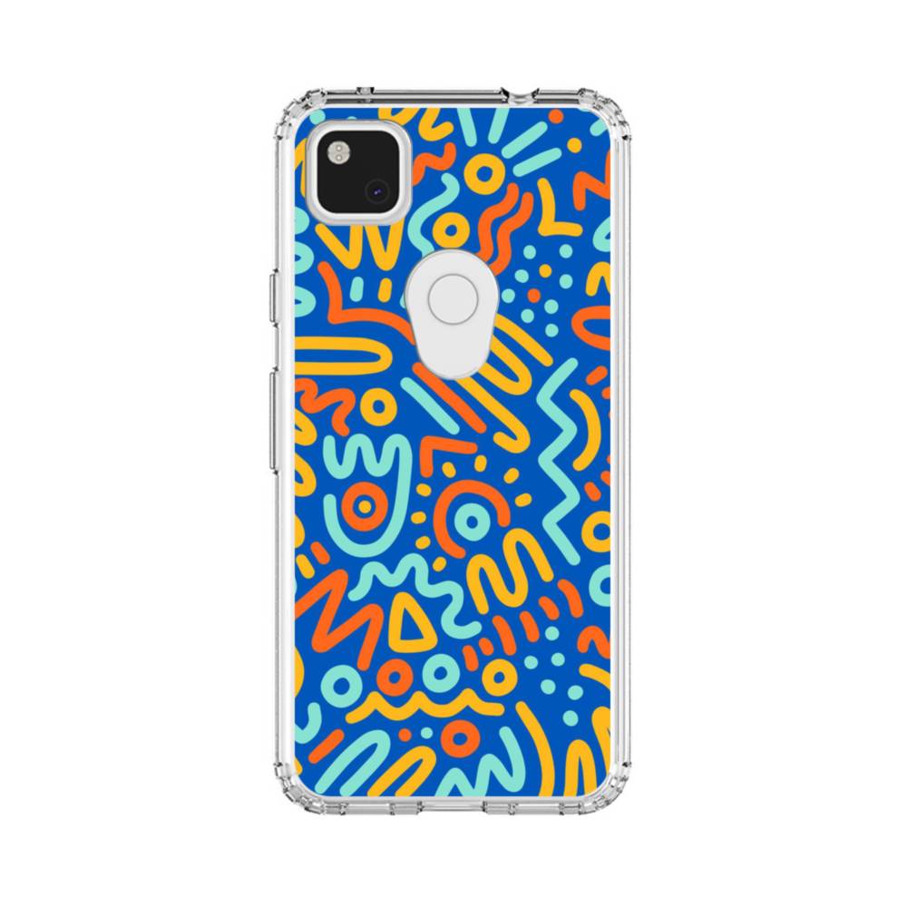 ブルー・イエローの幾何学模様 Google Pixel 4a クリアケース