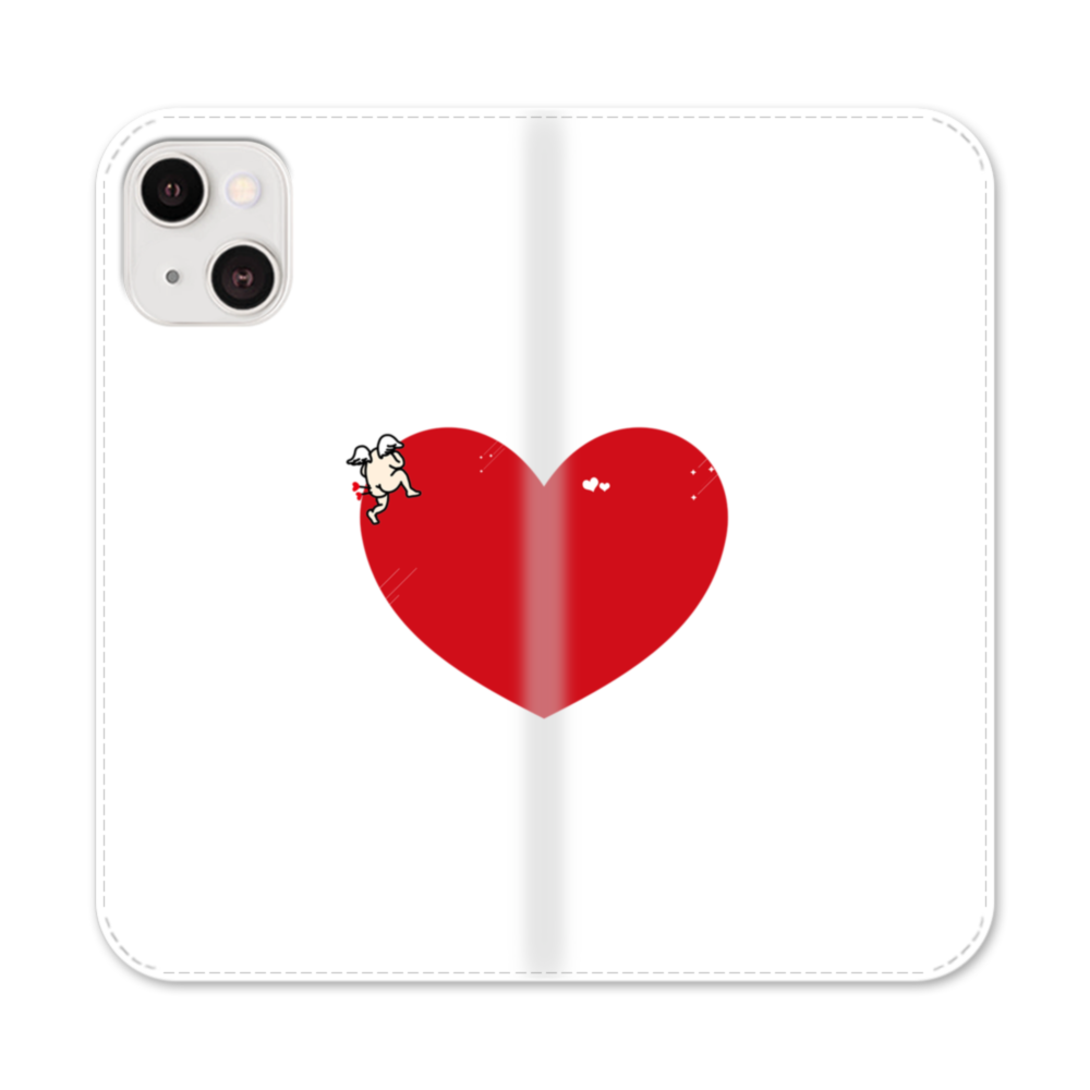 バレンタインデー・ハートのアート:キューピーは愛を覗いてる iPhone 13 Mini 手帳型ケース