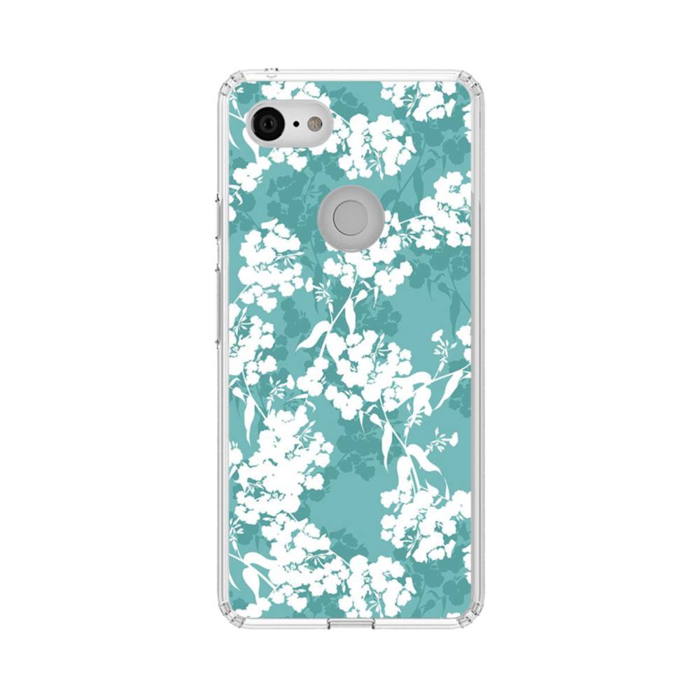 ライトシアン・花柄 Google Pixel 3 クリアケース