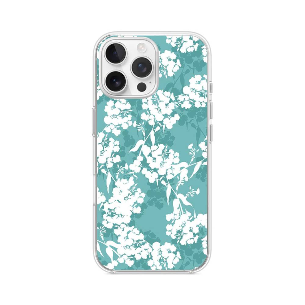ライトシアン・花柄 iPhone 16 Pro Max クリアケース